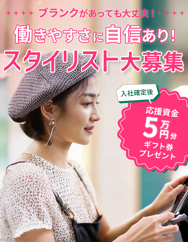今すぐLINEお友だち追加する ① 新規集客数1万人以上! 入社日から入客可能◎②駅近で通勤ラクラク♪③ 福利厚生充実! 病気・ケガの入院保険も完備 blissのエステ・脱毛も社員割で利用OK 独立支援制度あり(FCオーナー実績5名) 選ばれる理由をもっとのぞいてみる→ 今すぐLINEお友だち追加する Sourireのとある1日スケジュール < 5歳と1歳のママ美容師さんの場合 > 09:00 | 保育園へ送り出し10:00 | 施術スタート12:30 | 予約の合間にごはん休憩17:00 | 施術終了&退勤18:00 | お迎え&夕飯の準備 今すぐLINEお友だち追加する 募集要項 ◼︎職種 スタイリスト ◼︎雇用形態 正社員/時短正社員/パート◼︎給与 【正社員】(sourireのみ) ①公休7日制 月給26万円 ②公休8日制 月給24.5万円 ③公休9日制 月給23.3万円【時短正社員】(半年後に昇給) ①Sourire9:30~16:00 rire hair9:00~15:30 基本給 147,000円(半年後 151,500円) ②Sourire9:30~16:30 rire hair9:00~16:00 基本給 158,500円(半年後 163,500円) ③Sourire9:30~17:00 rire hair9:00~16:30 基本給 169,500円(半年後 175,000円) ④Sourire9:30~17:30 rire hair9:00~17:00 基本給 181,000円(半年後 186,500円)◼︎勤務地 福岡・鹿児島・大分・rire hair(希望考慮) ◼︎福利厚生 社保完備・育休3年・社員割引・引っ越し補助 etc. ◼︎勤務時間 店舗により異なる(9:00〜17:00/9:30〜19:00) 今すぐLINEお友だち追加する 会社概要 会社名:株式会社St.Belle.Co設立:2011年4月29日店舗数:27店舗 Instagram @2025 スーリールグループ まずは気軽にLINEから相談してみる! 最初はカジュアルに15分だけお話ししてみよう!